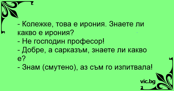 - Колежке, това е ирония. Знаете ли какво е ирония?