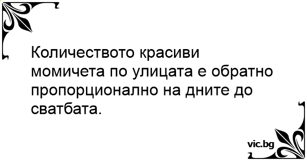 Количеството красиви момичета по улицата е обратно пропорционално на дните до сватбата.