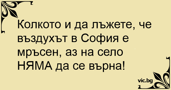 Колкото и да лъжете, че въздухът в София е мръсен, аз на село НЯМА да се върна!