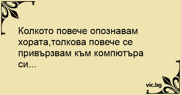 Колкото повече опознавам хората,толкова повече се привързвам към компютъра си...