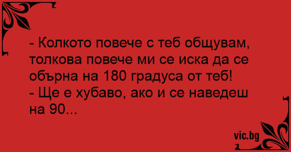 - Колкото повече с теб общувам, толкова повече ми се иска да се обърна на 180 градуса от теб!