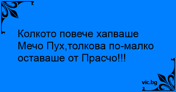 Колкото повече хапваше Мечо Пух,толкова по-малко оставаше от Прасчо!!!