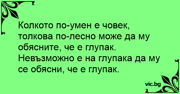 Колкото по-умен е човек, толкова по-лесно може да му обясните, че е глупак.