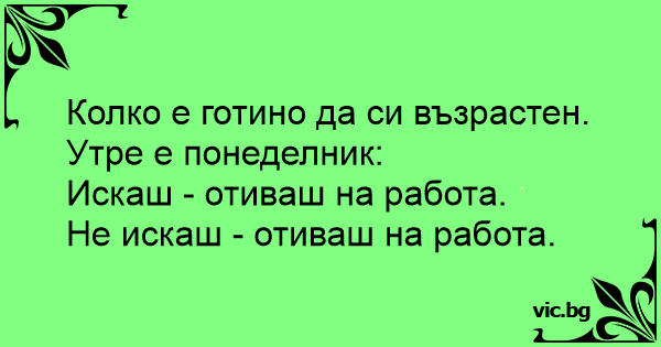 Колко е готино да си възрастен. Утре е понеделник: