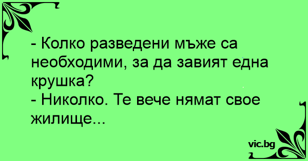 - Колко разведени мъже са необходими, за да завият една крушка?