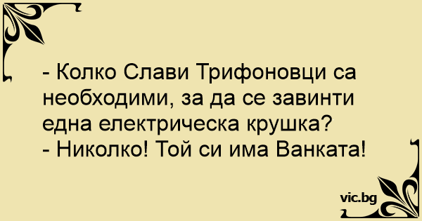 • Вицове от Facebook от нашата страница https://www.facebook.com/www.vic.bg