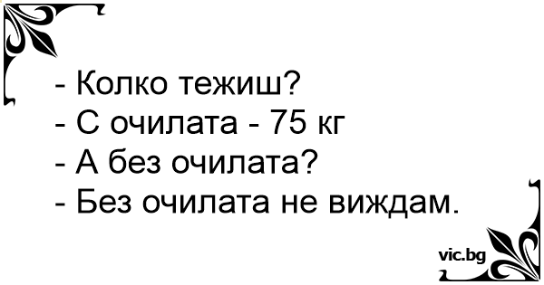 — Скільки ви важите? — В окулярах 120. — А без окулярів? — А без них я ваги не бачу.
