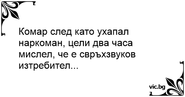 Комар след като ухапал наркоман, цели два часа мислел, че е свръхзвуков изтребител...