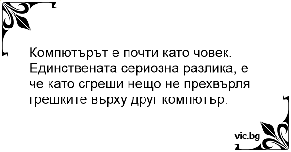 Компютърът е почти като човек. Единствената сериозна разлика, е че като сгреши нещо не прехвърля грешките върху друг компютър.