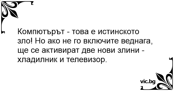 Компютърът - това е истинското зло! Но ако не го включите веднага, ще се активират две нови злини - хладилник и телевизор.