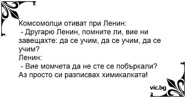 - Другарю Ленин, помните ли, вие ни завещахте: да се учим, да се учим, да се учим?