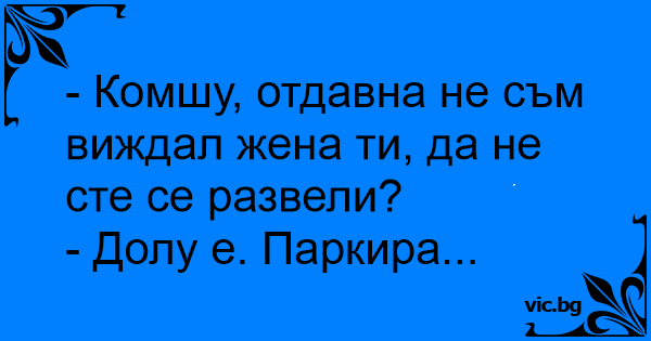 - Комшу, отдавна не съм виждал жена ти, да не сте се развели?