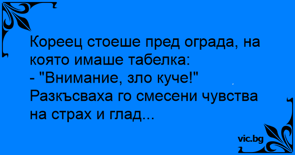 Кореецът се взираше в табелката "Внимание, зло куче!
