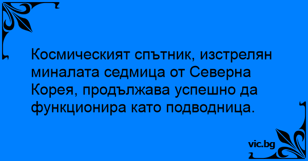 Космическият спътник, изстрелян миналата седмица от Северна Корея, продължава успешно да функционира като подводница.