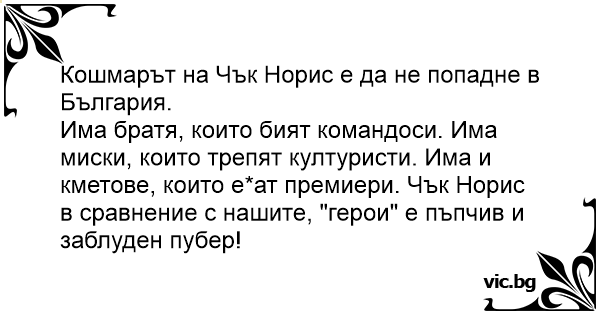 Има братя, които бият командоси. Има миски, които трепят културисти. Има и кметове, които eбat премиери. Чък Норис в сравнение с нашите, "герои" е пъпчив и заблуден пубер!