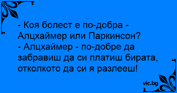 - Алцхаймер - по-добре да забравиш да си платиш бирата, отколкото да си я разлееш!