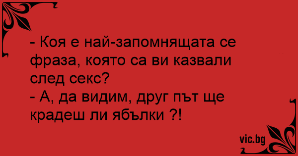 - Коя е най-запомнящата се фраза, която са ви казвали след cekc?