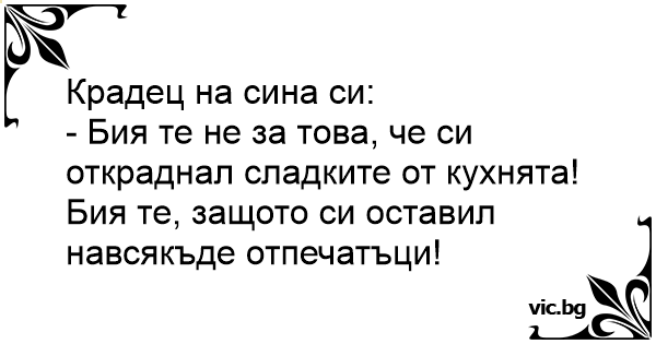- Бия те не за това, че си откраднал сладките от кухнята! Бия те, защото си оставил навсякъде отпечатъци!