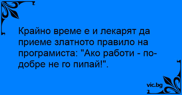 Крайно време е и лекарят да приеме златното правило на програмиста: "Ако работи - по-добре не го пипай!".