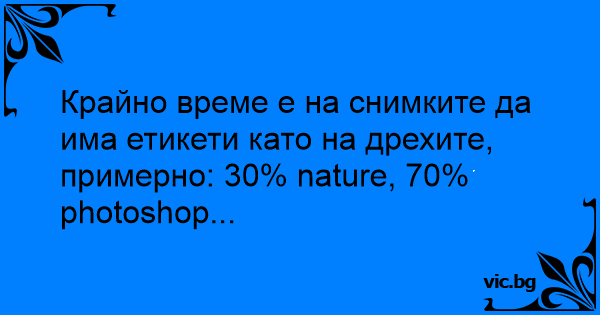 Крайно време е на снимките да има етикети като на дрехите, примерно: 30% nature, 70% photoshop...
