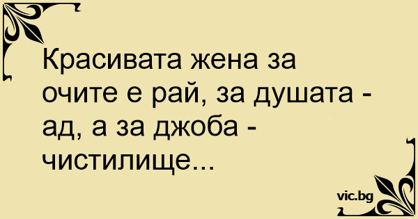 Красивата жена за очите е рай, за душата - ад, а за джоба - чистилище...