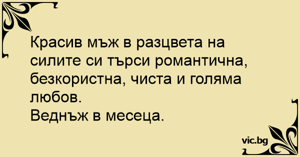 Красив мъж в разцвета на силите си търси романтична, безкористна, чиста и голяма любов.