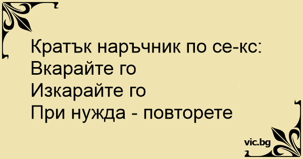 Короткий посібник з сексу: "Засунути. Витягнути. При необхідності повторити".