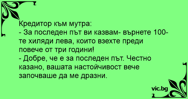 - За последен път ви казвам- върнете 100-те хиляди лева, които взехте преди повече от три години!