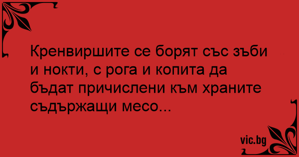 Кренвиршите се борят със зъби и нокти, с рога и копита да бъдат причислени към храните съдържащи месо...