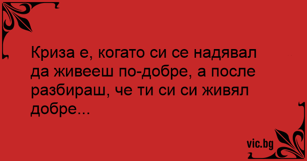 Криза е, когато си се надявал да живееш по-добре, а после разбираш, че ти си си живял добре...