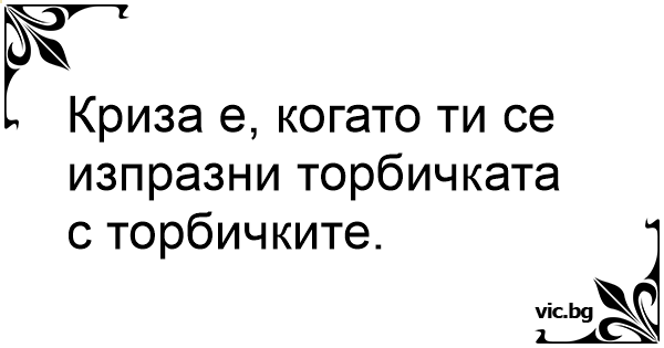 Криза е, когато ти се изпpaзни торбичката с торбичките.