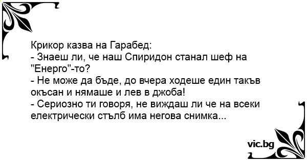 - Знаеш ли, че наш Спиридон станал шеф на "Енерго"-то?