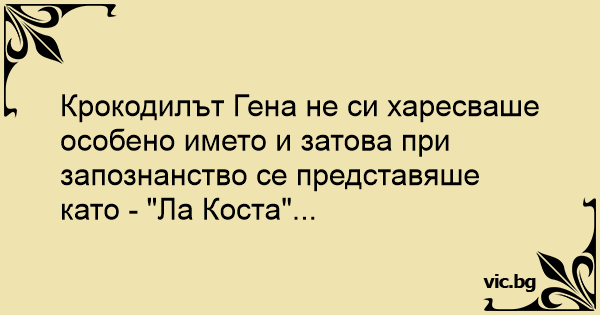 • Вицове от Facebook от нашата страница https://www.facebook.com/www.vic.bg
