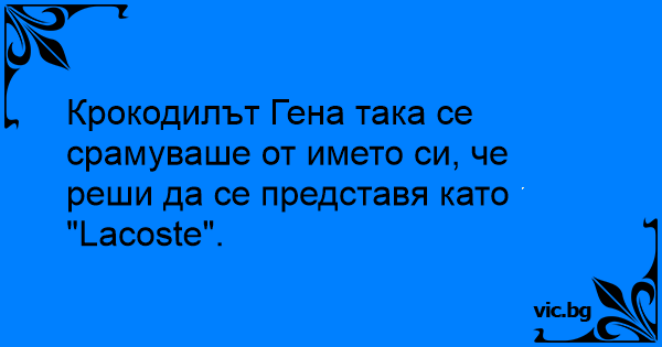 Крокодилът Гена така се срамуваше от името си, че реши да се представя като "Lacoste".