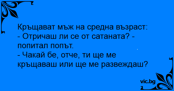 - Чакай бе, отче, ти ще ме кръщаваш или ще ме развеждаш?