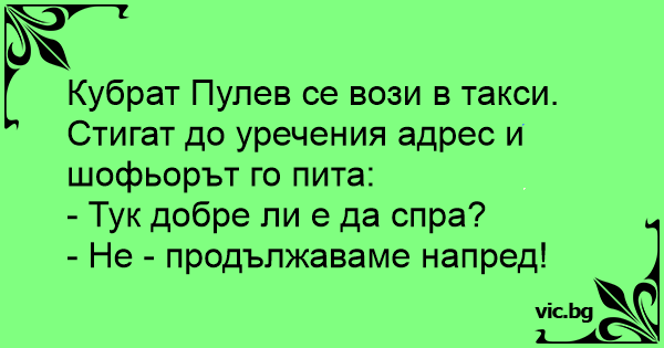 Кубрат Пулев се вози в такси. Стигат до уречения адрес и шофьорът го пита: