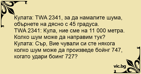 TWA 2341: Кула, ние сме на 11 000 метра. Колко шум може да направим тук?