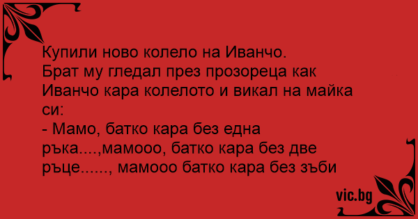 - Мамо, батко кара без една ръка....,мамооо, батко кара без две ръце......, мамооо батко кара без зъби