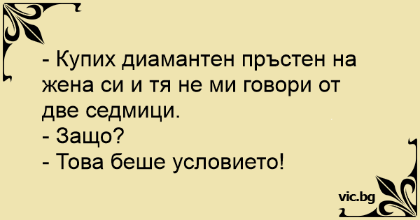 - Купих диамантен пръстен на жена си и тя не ми говори от две седмици.