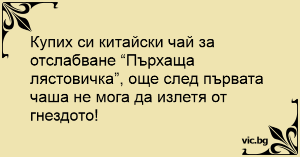 Купих си китайски чай за отслабване “Пърхаща лястовичка”, още след първата чаша не мога да излетя от гнездото!