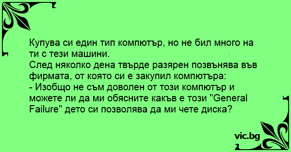 - Изобщо не съм доволен от този компютър и можете ли да ми обясните какъв е този "General Failure" дето си позволява да ми чете диска?