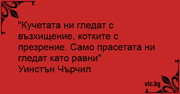 "Кучетата ни гледат с възхищение, котките с презрение. Само прасетата ни гледат като равни"