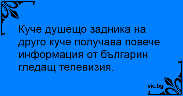 Куче душещо задника на друго куче получава повече информация от българин гледащ телевизия.