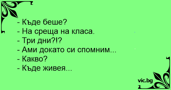 • Вицове от Facebook от нашата страница https://www.facebook.com/www.vic.bg