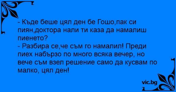 - Къде беше цял ден бе Гошо,пак си пиян,доктора нали ти каза да намалиш пиенето?