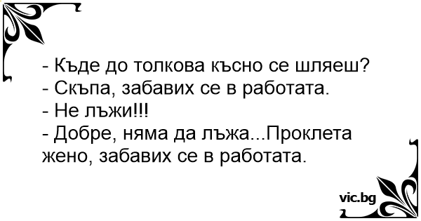- Добре, няма да лъжа...Проклета жено, забавих се в работата.