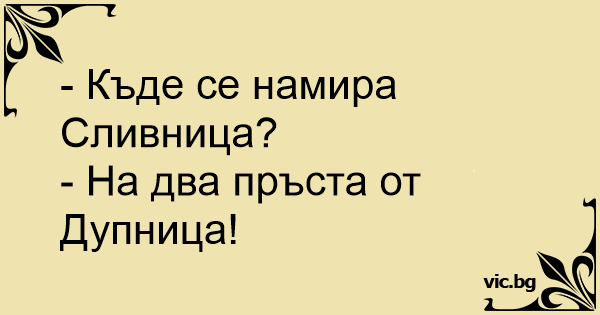- Къде се намира Сливница?<br />- На два пръста от Дупница!