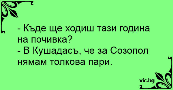 • Вицове от Facebook от нашата страница https://www.facebook.com/www.vic.bg