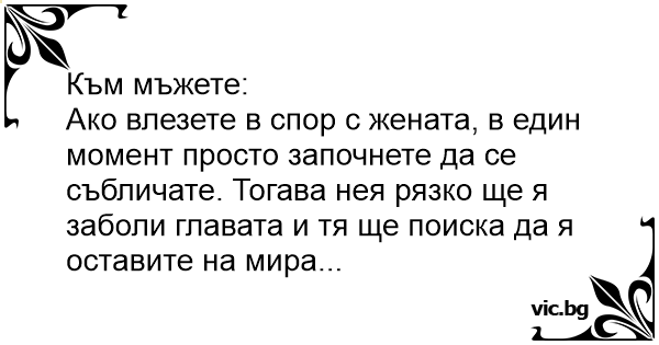 Ако влезете в спор с жената, в един момент просто започнете да се събличате. Тогава нея рязко ще я заболи главата и тя ще поиска да я оставите на мира...