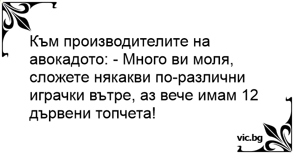 Към производителите на авокадото: - Много ви моля, сложете някакви по-различни играчки вътре, аз вече имам 12 дървени топчета!